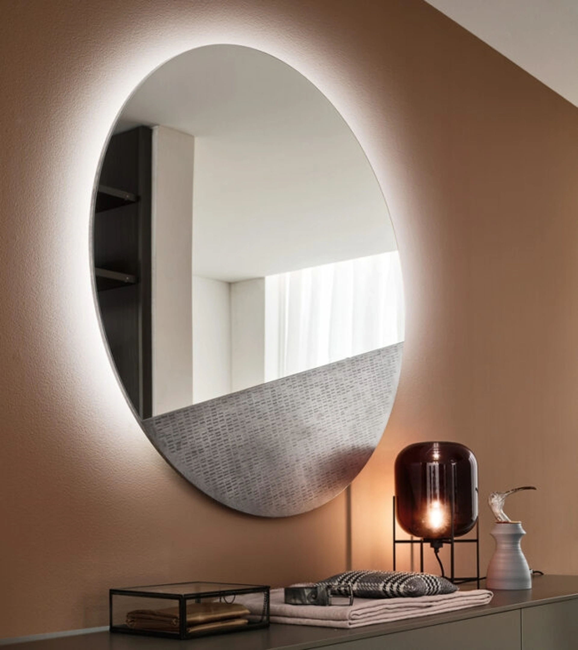 Le composizioni arredative di alto valore estetico del brand Maronese arredano l'ambiente con i loro colori e stile, ricreando particolari atmosfere arredative. Assai versatili e plurifunzionali, i Complementi moderni in melaminico rispondono a funzioni diverse: completano le doti di funzionalità e il valore estetico del locale. Nel nostro punto vendita potrai toccare con mano la qualità dei modelli di specchi moderni in melaminico della firma, proprio come questa proposta in foto. Complementi e specchi personalizzano l'arredo di casa, occupando lo spazio in modo utile e rendendolo accogliente e bello da vedere.