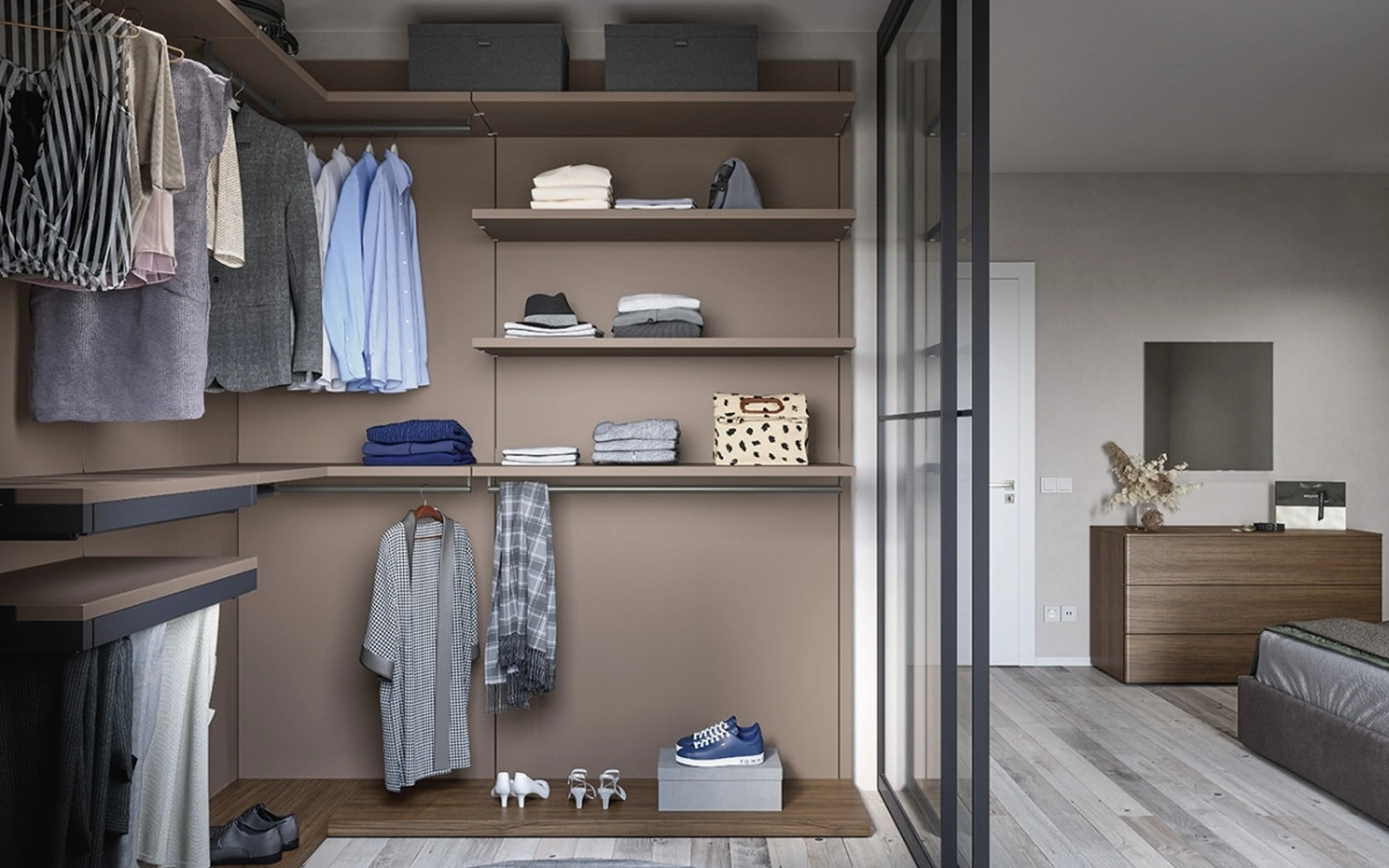 Gli Armadi e le cabine armadio con ante scorrevoli devono ammobiliare la zona notte assicurandoti una perfetta organizzazione degli spazi e un'esclusiva ricerca stilistica. La zona del riposo è dedicata al riposo, deve quindi risultare ben arredata e completa di mobili e complementi in grado di ricreare un'ambientazione sempre distensiva. Cabina Armadio a cremagliera con ante scorrevoli 09B di Cinquanta3: compila il form, contattaci e dai vita alla stanza del relax come l'hai sempre immaginata. Per completare al meglio il progetto d'arredo, scegli le nostre proposte di Arredamento Casa dei migliori produttori, letti, armadi e comò differenti per buon gusto, dimensione e finitura.