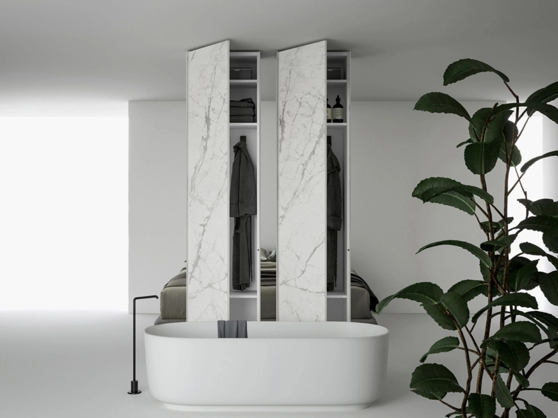 Una ampia disponibilità di arredi in gres come questo armadio con ante battenti nell'immagine. Affidabilità e comfort sono gli aspetti che, unitamente a un certo stile, distinguono tutti gli Armadi su misura design della firma Caccaro. Armadio Freedhome Pilastri Bifacciali di Caccaro in gres: in una ricca gamma di mobili e complementi, questo modello ti permetterà di completare la tua zona del riposo come l'hai sempre sognata. Armadio Freedhome Pilastri Bifacciali di Caccaro: se desideri arredatori professionisti per preventivi e progetti, realizza con noi la casa che hai sempre sognato. Se vuoi creare una stanza bella e funzionale, compila il form o vieni da noi per ottenere infromazioni, tante idee per la casa nell'ambito dell'Arredamento Casa.