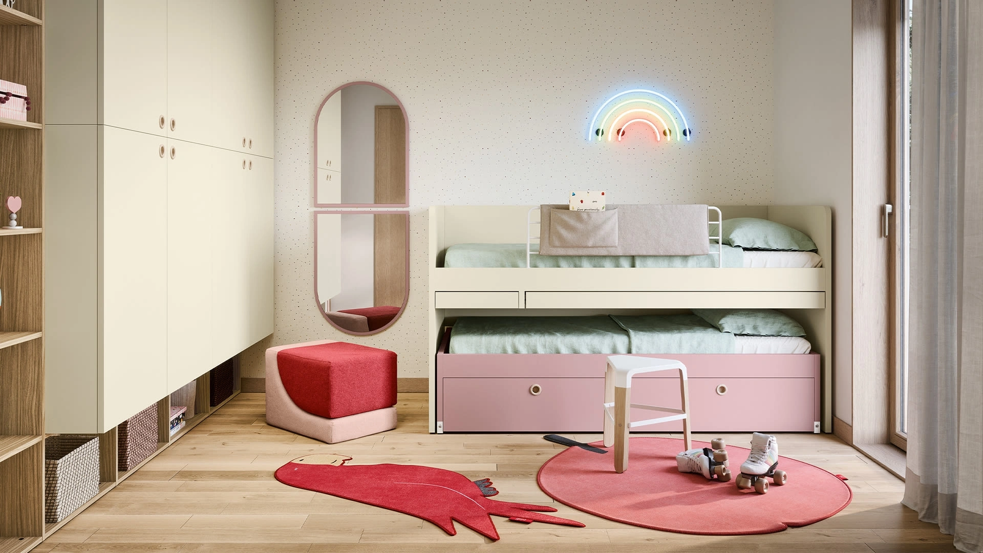 Scopri i Letti Rialzati Salvaspazio Nidi, disponibili presso il nostro showroom Arredamenti Bertoglio Cristina s.n.c. a Castelverde. Queste innovative soluzioni sono perfette per ottimizzare gli spazi, trasformando anche le camerette più piccole in ambienti funzionali e dinamici. Sfruttando l'altezza, permettono di creare aree multifunzionali con letti singoli aggiuntivi, pratici cassetti integrati o un comodo letto estraibile per gli ospiti. Ogni composizione è progettata per la massima versatilità e sicurezza, con elementi come spondine protettive, scalette robuste e piani scrivania a scomparsa, ideali per studio, riposo e gioco in un ambiente compatto e ordinato. La personalizzazione è un punto di forza dell'offerta Nidi, con un'ampia selezione di finiture e colori vivaci come Basalto, Bianco, Canapa, Cashmere, Cemento, Ciliegia, Denim, Erba, Gesso, Lavagna, Mandorlo, Mare, Mirtillo, Ninfea, Nocciolo, Nuvola, Papaya, Pino, Pistacchio, Raperonzolo, Rosa e Zenzero, permettendo di adattare ogni soluzione allo stile desiderato. Il nostro negozio Arredamenti Bertoglio Cristina s.n.c. a Castelverde è il punto di riferimento per le soluzioni Nidi, offrendo un servizio impeccabile ai clienti della provincia di Cremona e zone limitrofe, inclusi comuni come Castelleone.