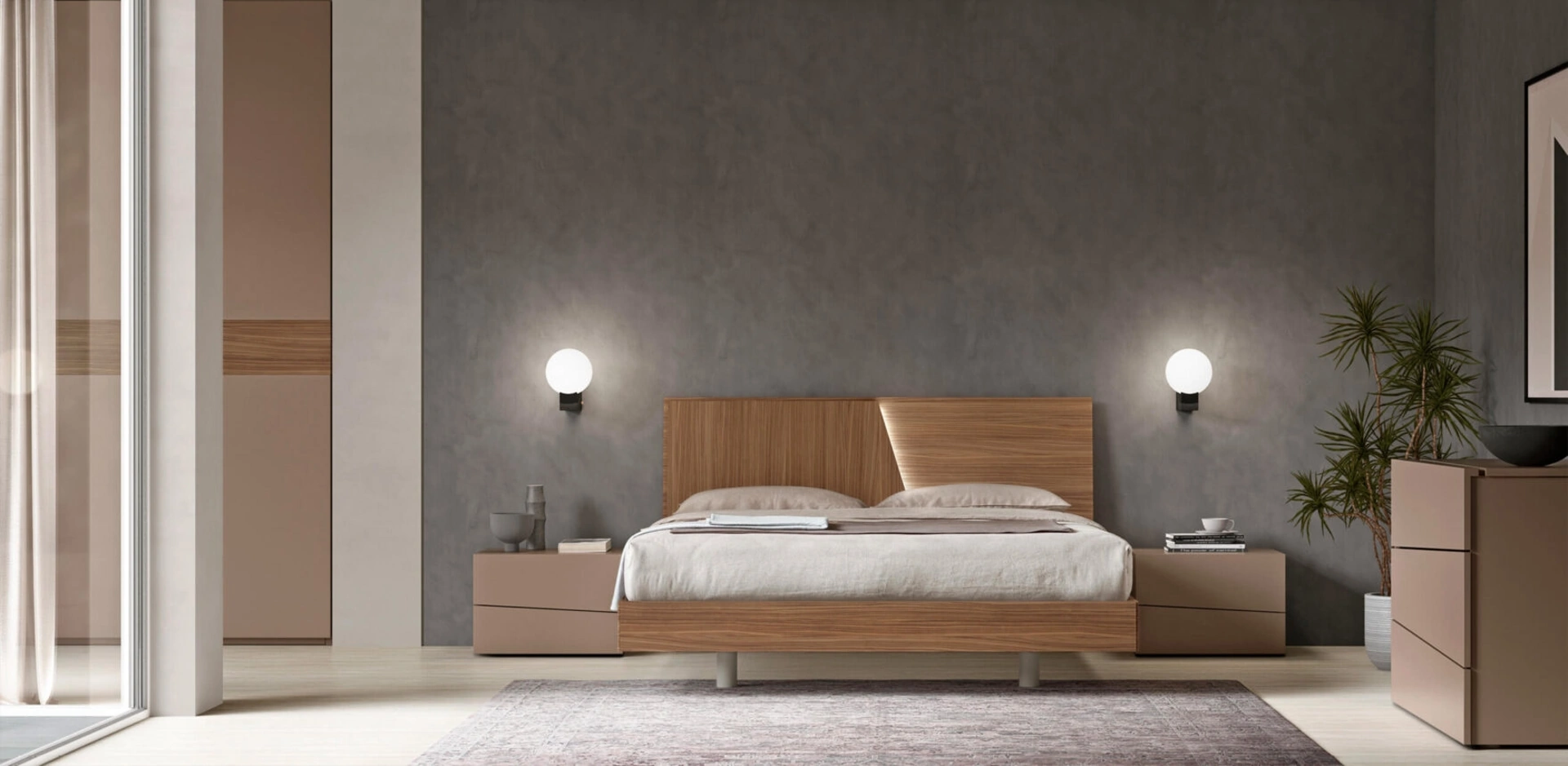 Materiali pregiati e ottima fattura per il Gruppo Scuderia di Maronese in in laccato opaco, disponibile in showroom insieme alle altre diverse idee dell'azienda, per fare della camera da letto un luogo che rifletta i tuoi gusti. Ti chiedi in che modo abbinare letti, armadi e comò? Con il modello di Maronese mostrato in foto avrai un arredo adeguato per un luogo dai richiami moderni.
