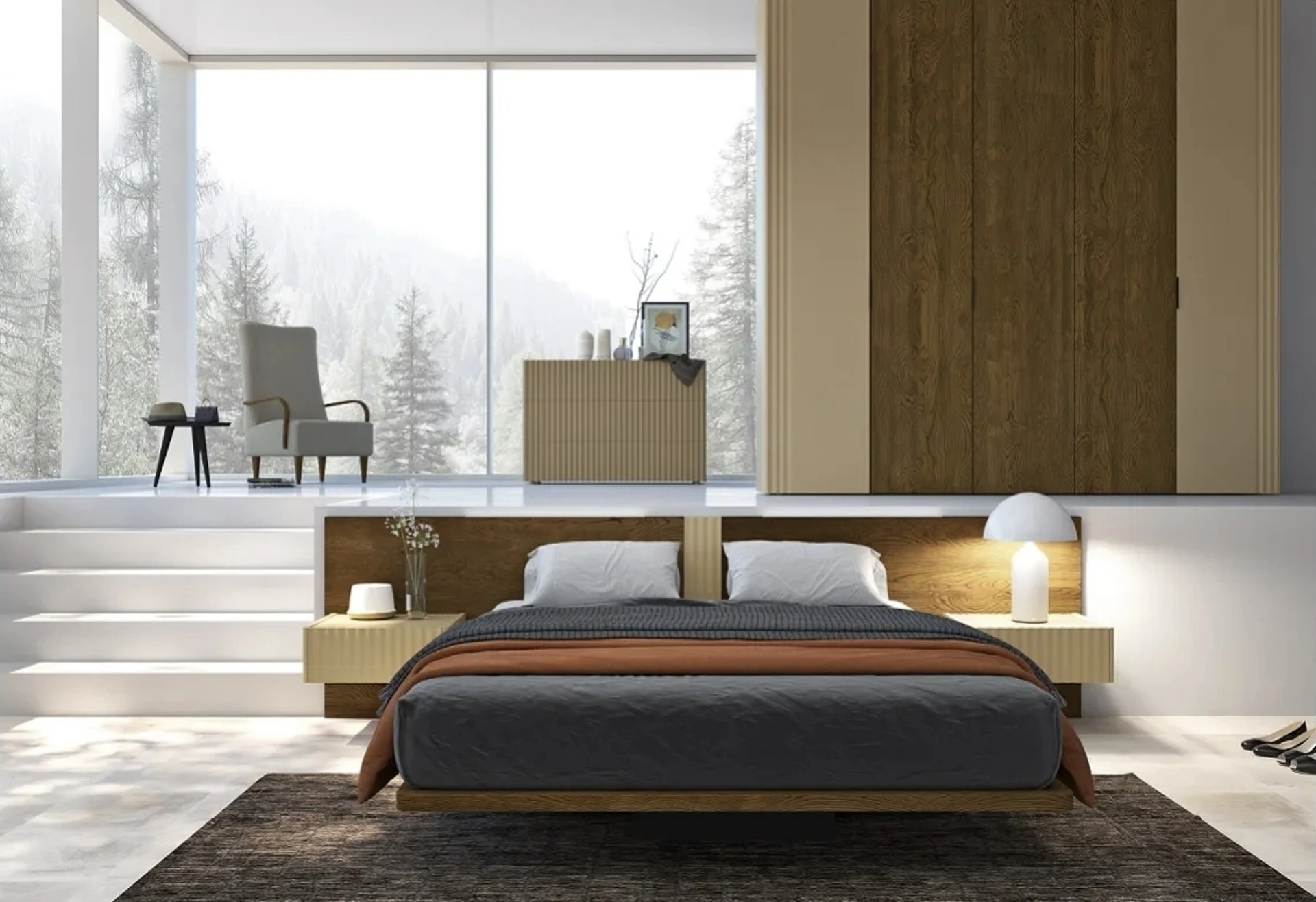 Durante l'acquisto della giusta tipologia di letto, valuta con attenzione le sue dimensioni, le finiture, la forma e il suo stile rispetto al resto dell'arredo. Scegli tonalità e finiture e realizza il tuo progetto d’arredo nella camera da letto, progettandola proprio come l'avevi immaginata. Se desideri una soluzione in legno, il modello mostrato in foto è contraddistinto da materiali di prima scelta e forme decise, che invitano a goderti un sonno tranquillo e ristoratore. I Letti matrimoniali con testiera della marca, leader nella produzione di Arredamento Casa per la camera da letto, sono pensati per essere abbinati a mobili e oggetti accessori di ogni genere, come armadi e comodini, lampade e piantane.