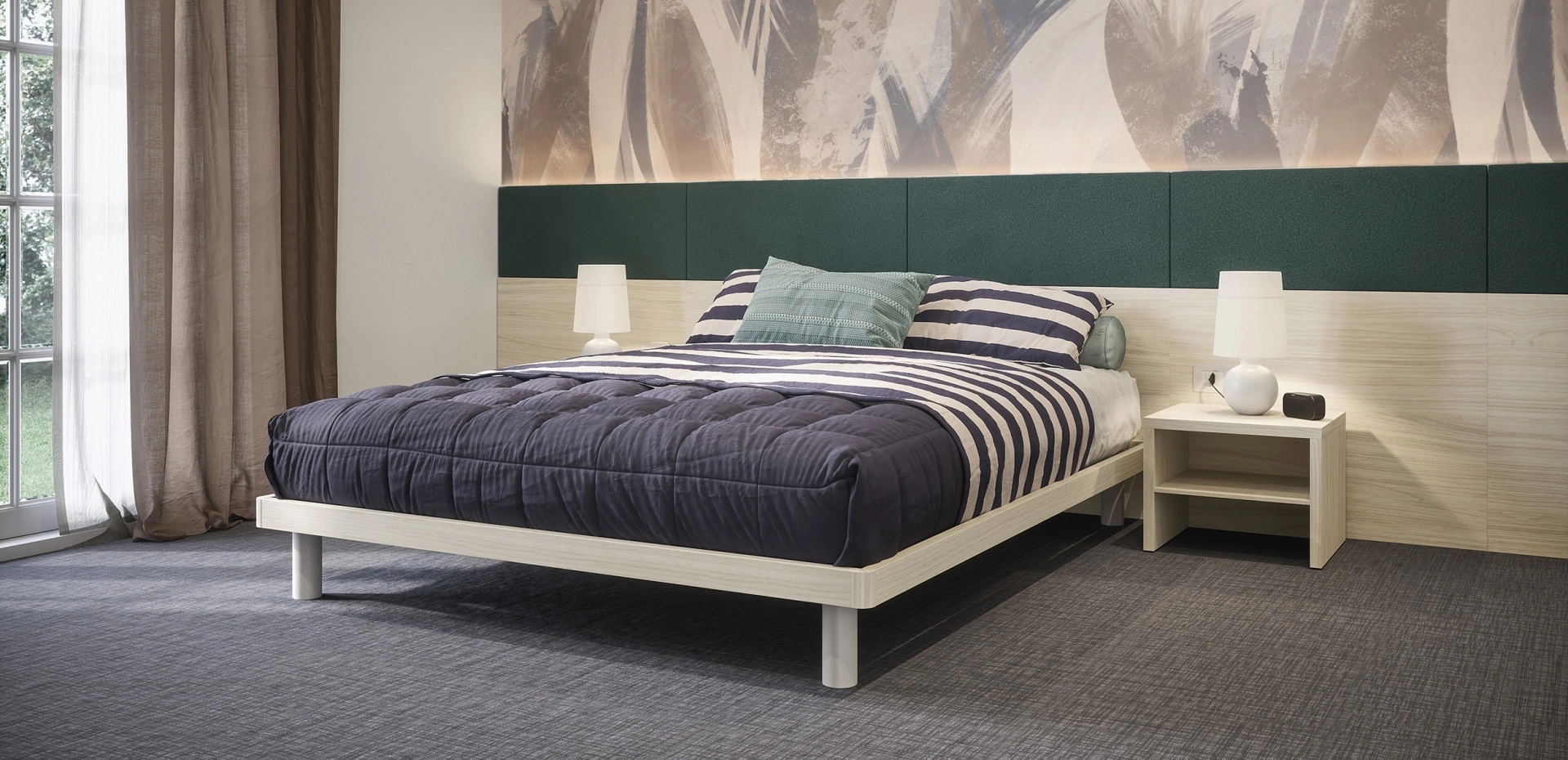 Durante l'acquisto della giusta tipologia di letto, valuta attentamente le sue dimensioni, le finiture, la forma e il suo stile rispetto al resto degli arredi. Scegli cromie e finiture e realizza il tuo progetto d’arredo nella zona notte, progettandola proprio come l'avevi immaginata. I Letti matrimoniali con testiera dell'azienda, specialista nella realizzazione di Arredamento Casa per la zona notte, sono progettati per essere abbinati a mobili e complementi di ogni tipo, come armadi e comò, lampade e piantane. Se desideri una soluzione in melaminico, il modello mostrato in foto è caratterizzato da materiali di prima scelta e linee decise, che invitano a goderti un sonno completo e rigenerante.