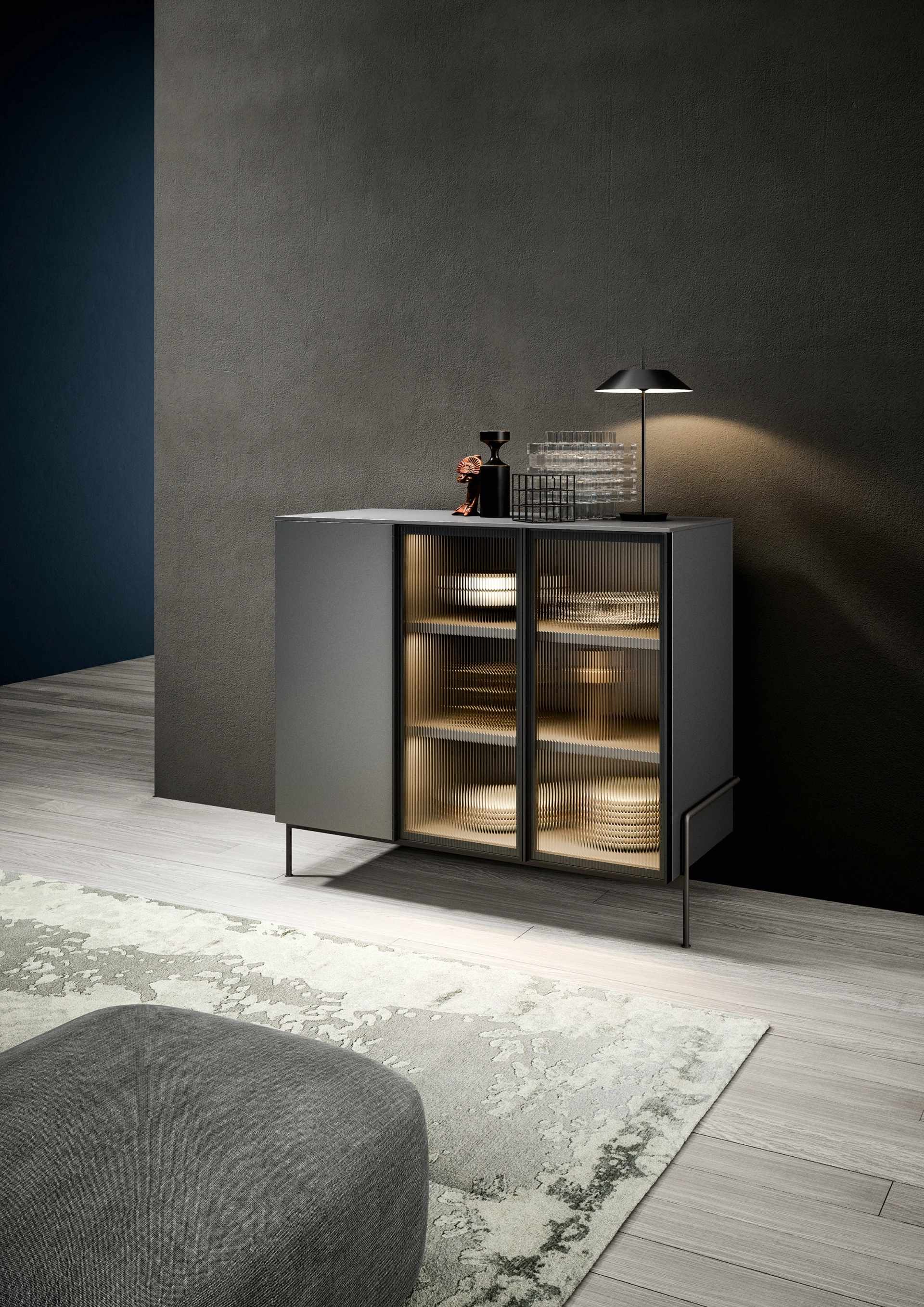 | Materiale: | Metallo (basamento), Laccato opaco, Ossidato, Noce Canaletto (versione Rays), Vetro (versione Era) |