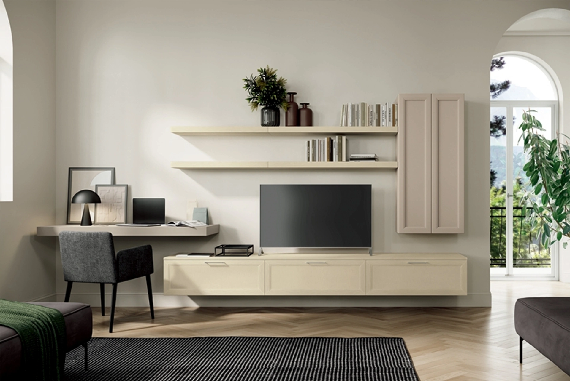La parete attrezzata Arcadia AS004 di Colombini Casa rappresenta un'espressione di design contemporaneo e funzionalità modulare. Questa soluzione per il soggiorno, appartenente alla raffinata collezione Arcadia Mezzogiorno, è concepita per integrarsi armoniosamente in ambienti moderni, offrendo versatilità compositiva e un'estetica ricercata. Le sue linee pulite e la struttura ben ingegnerizzata garantiscono una perfetta adattabilità agli spazi abitativi, con un'attenzione particolare alla durabilità dei componenti. L'accurata selezione dei materiali impiegati e la precisione costruttiva sono elementi distintivi che assicurano resistenza e un'estetica durevole nel tempo.