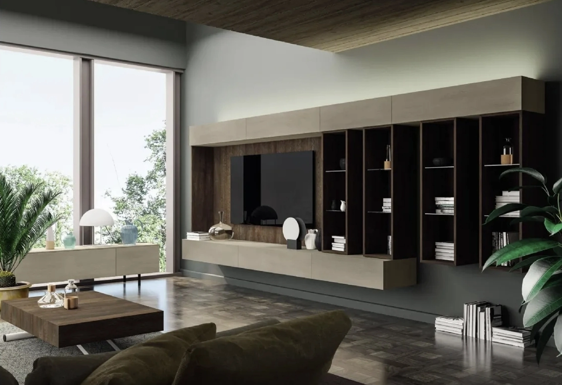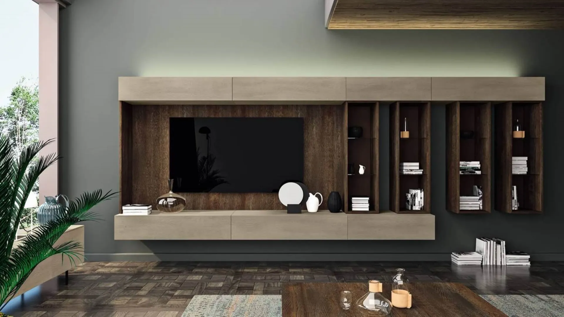 La Parete attrezzata Cheba 05 Fratelli Mirandola nella fotografia è una delle più belle soluzioni d’arredo sul mercato: grandi doti di componibilità e le differenti opportunità di progettazione la rendono bella e di grande qualità. Fratelli Mirandola produce originali modelli di mobili soggiorno, diversi per stile e conformazioni, texture e elementi: scopri in negozio l'Arredamento Casa delle migliori marche. I mobili soggiorno in legno dalle linee moderne come il modello nella fotografia sono davvero poliedrici e capaci di arredare il living usufruendo al meglio di ogni angolo. Lasciati stuzzicare da una ricca gamma di mobili per la zona giorno e potrai trovare la parete attrezzata che fa per te. Poiché il living deve essere uno spazio ben organizzato e bello da vedere, sono molto utili alcuni mobili belli e pratici come le Pareti Attrezzate.