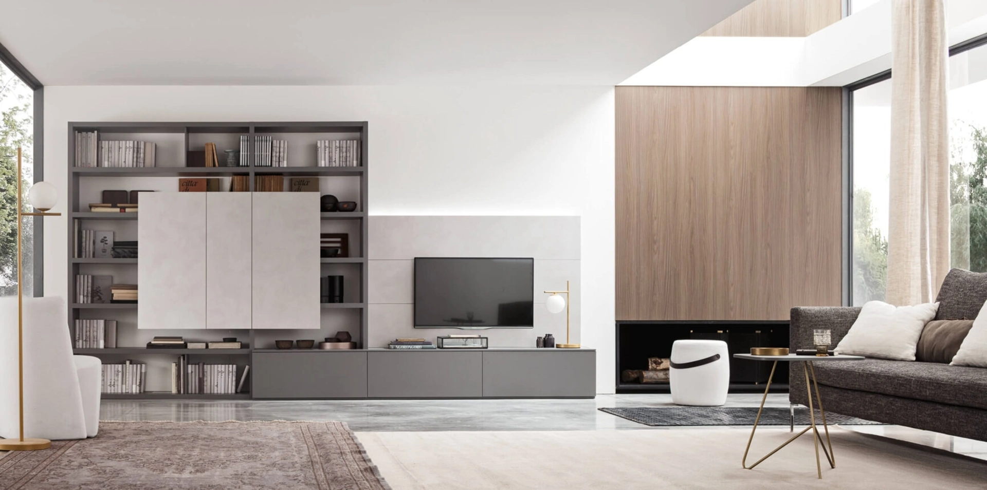 | Materiale: | Melaminico Grafite/Cemento Grigio, Disponibile in diverse finiture di melaminico (essenza, colore, marmo, cemento), impiallacciati, decor, laccati opachi e lucidi, frassino laccato, millerighe e ante in vetro. |