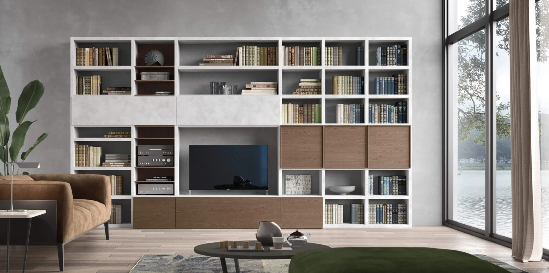 Il Sistema Spalla Comp SA2222, firmato Maronese, è una parete attrezzata modulare pensata per ottimizzare l'organizzazione e l'estetica degli ambienti giorno. La sua architettura versatile consente la creazione di configurazioni su misura, adattandosi con precisione alle diverse esigenze di spazio e stile. La ricchezza delle finiture disponibili è un punto di forza: si spazia dai melaminici che emulano legni naturali come Olmo Artico e Rovere Nodato, a quelli con effetti cromatici puri (Bianco, Grafite) o materici come marmo (CALACATTA) e cemento. L'offerta si estende agli impiallacciati in Rovere, ai decorativi esclusivi (DECOR GOLDEN, DECOR MAGIC) e a una vasta palette di laccati opachi e lucidi, inclusi metallizzati come Bronzo e Nichel. Elementi in frassino laccato, millerighe e ante in vetro, disponibili in varianti trasparenti e satinate, completano le possibilità di personalizzazione. Questo sistema è concepito per offrire una soluzione definitiva in termini di stile e funzionalità, assicurando un'integrazione armonica e duratura nell'ambiente domestico.