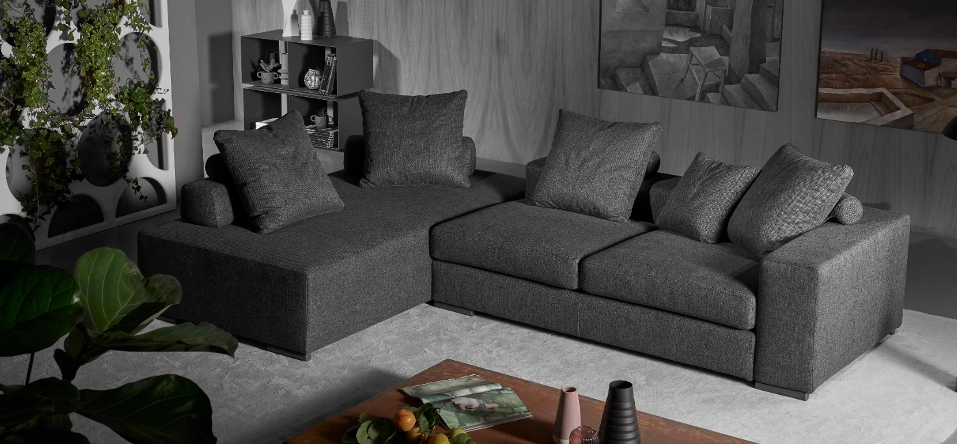 I nostri Salotti sono progettati per essere abbinati a accessori di ogni tipo, come tavolini, lampade e piantane o in combinazione con ulteriori divani in tessuto. Il catalogo Excò rende disponibili molteplici soluzioni per decorare l'ambiente in nome di funzionalità e estetica, mettendo al centro il tuo comfort. Divano angolare Marlon di Excò: crea uno spazio accogliente e confortevole in spazi moderni dall'estetica raffinata. La serie di divani del brand in questione presenta molteplici soluzioni originali per decorare il living in nome di funzionalità, comfort e stile.