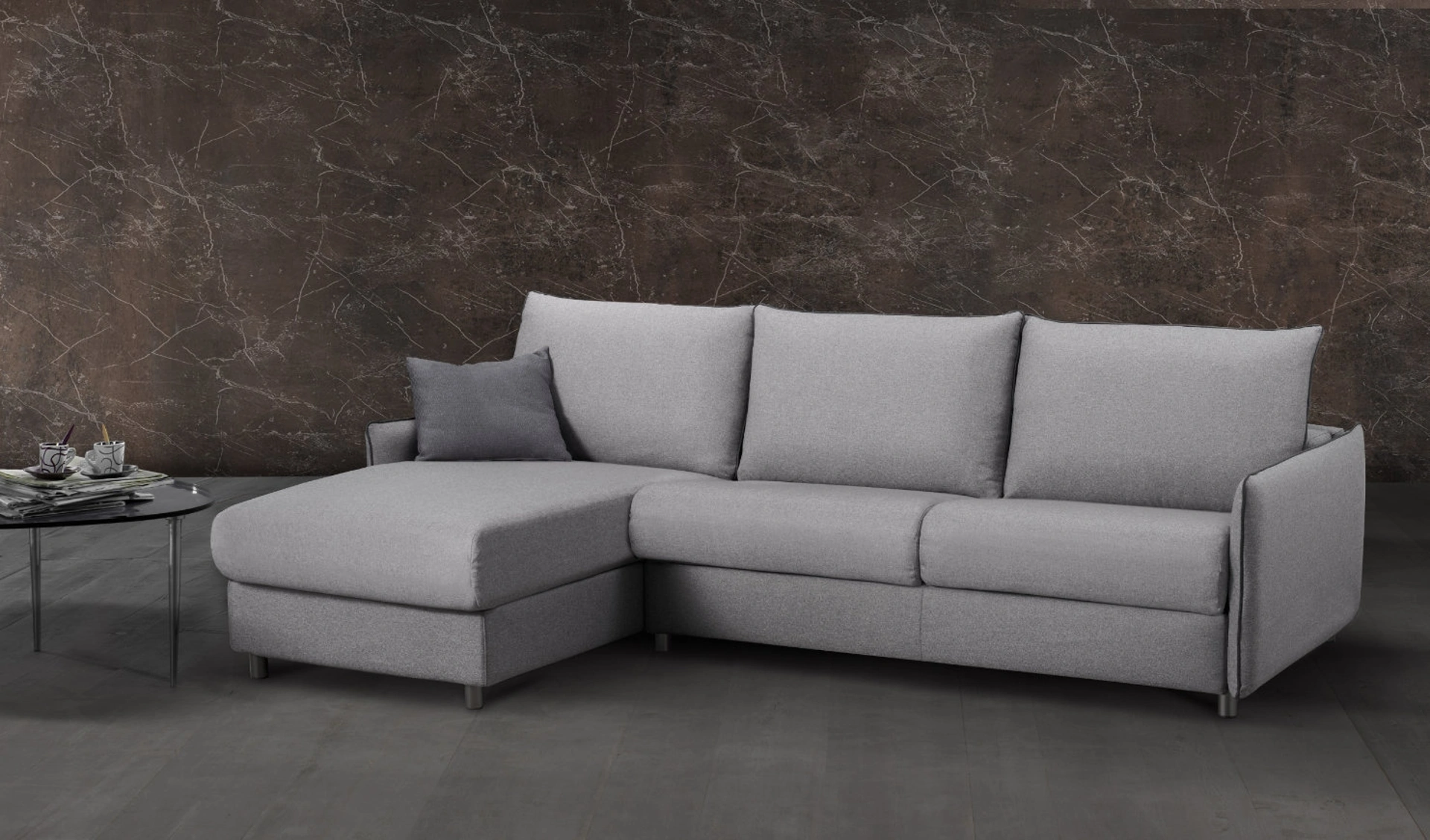 Divano Letto in tessuto Miracle di Excò: lasciati affascinare dalle nostre proposte di imbottiti moderni che possano garantire comfort, praticità e design nel tuo soggiorno. Excò, specialista nella realizzazione di divani, ha ideato per il modello nella fotografia un ricercato ed elegante rivestimento in tessuto. I Salotti rappresentano una parte del soggiorno veramente essenziale, da decorare con attenzione posizionando divani, poltrone e pouf. Il salotto è il centro del soggiorno di ogni casa, gli imbottiti sono elementi d’arredo attorno ai quali passare momenti di relax e di socializzazione.