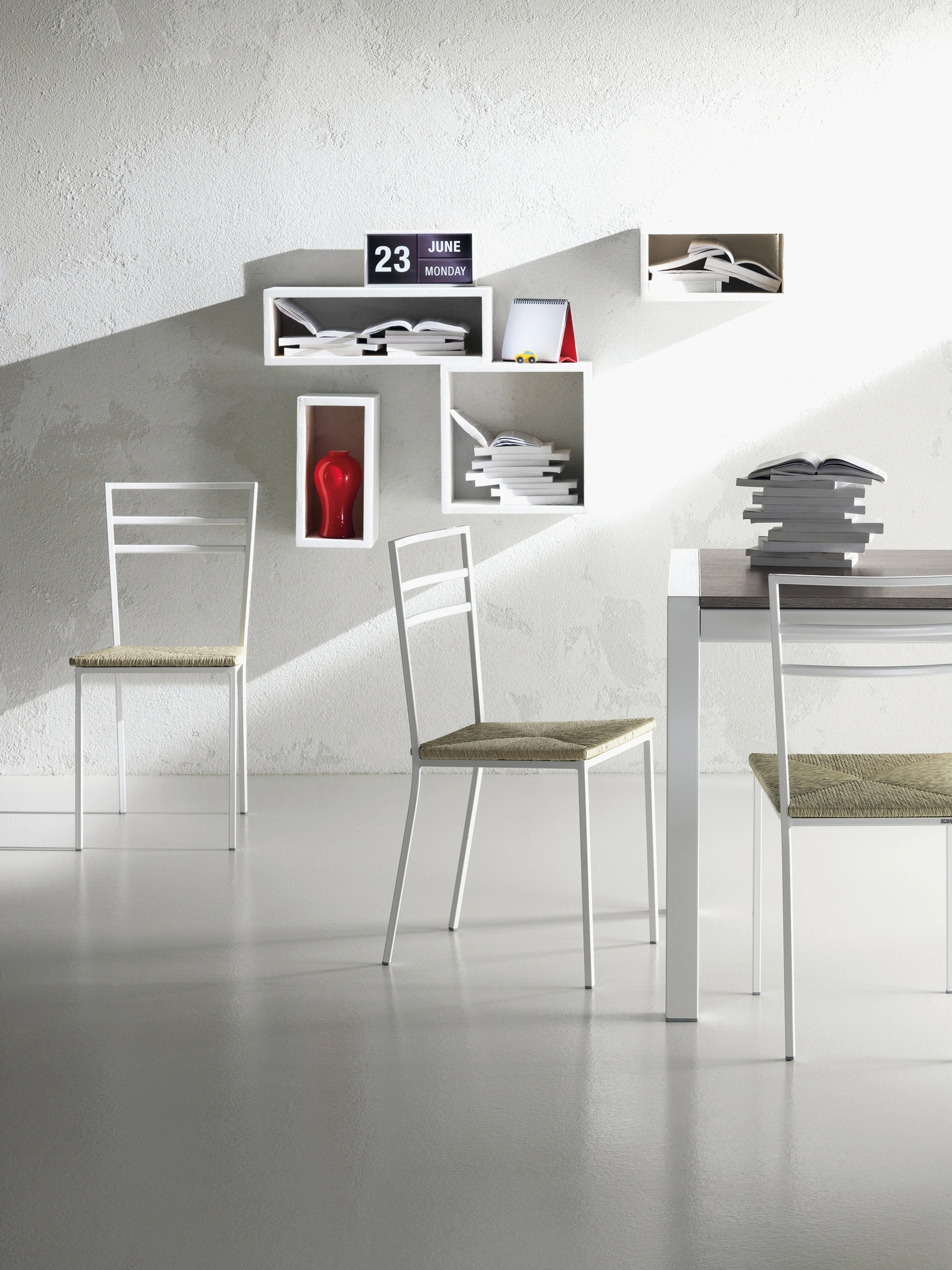 Se desideri una sedia in metallo per valorizzare l’ambiente di casa, scopri di più sul modello in foto e trova un tavolo coordinato. Una grande varietà di sedie fisse da cucina ti aspetta in negozio: contattaci per informazioni e preventivi e ottimizza i tuoi spazi con la qualità che solo Scavolini sa garantirti per mobili e complementi. Nel living o nella cucina, le Sedie sono pezzi di arredo imprescindibili: sottolineano il mood del locale e rispondono a un ruolo essenziale. Il living e la cucina non sono davvero piacevoli e confortevoli se arredati con le Sedie sbagliate, ecco perché occorre che siano abbinate al resto degli arredi e alle dimensioni della stanza. Sedia Quadrifoglio in metallo con seduta in paglia sintetica di Scavolini: questo modello andrà a customizzare spazi di ogni tipo, in modo particolare atmosfere moderne.