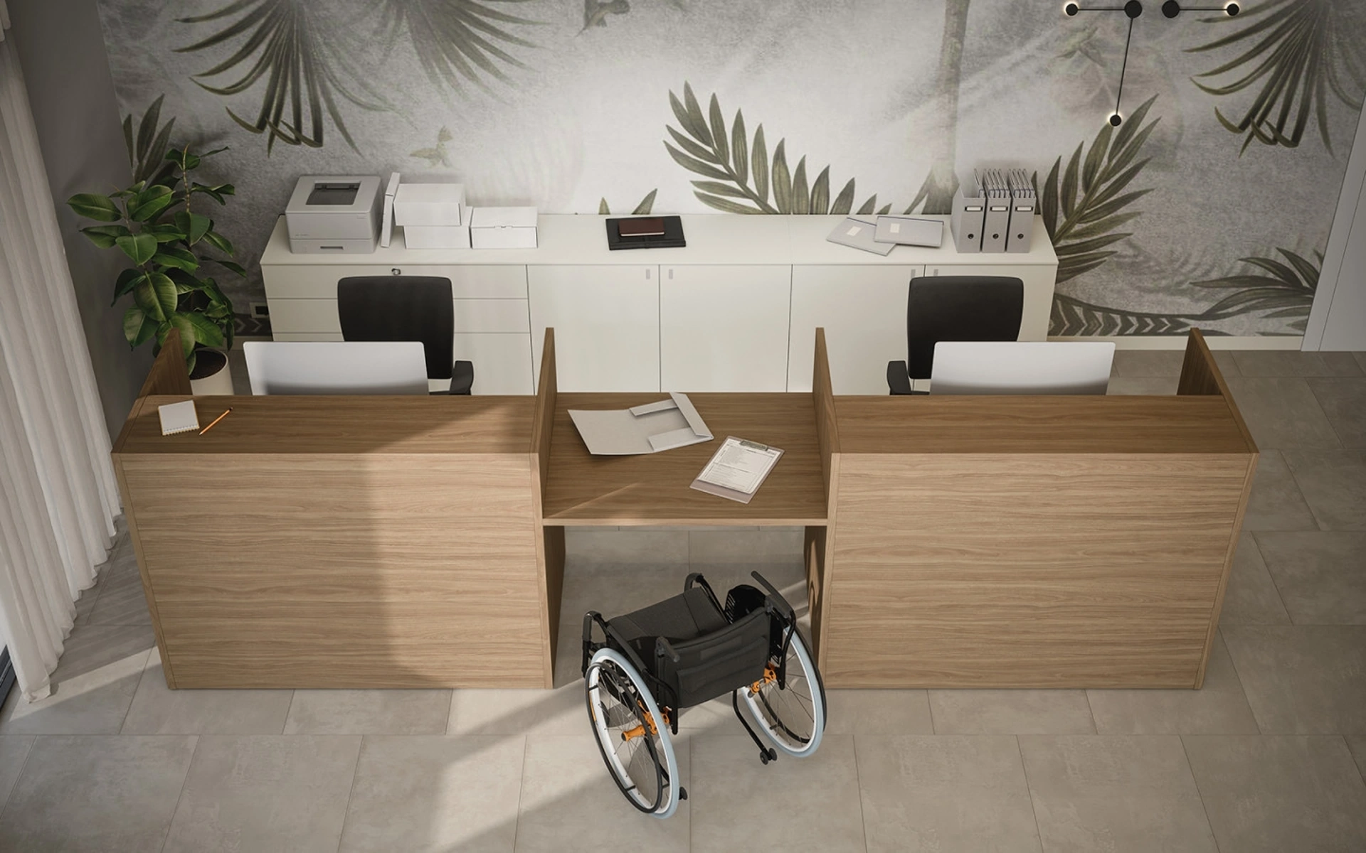 Per il tuo Arredo Ufficio assumono un ruolo di centrale importanza le composizioni arredative con banconi reception in melaminico, studiate per attrezzare lo spazio. In negozio puoi toccare con mano le più esclusive proposte d'arredo di Arredo Ufficio in melaminico, sempre belle e resistenti e ideali per ambienti di ogni genere. Guarda nel nostro negozio molteplici modelli di banconi reception di qualità eccellente, sempre fatti in materiali pregiati e che resistano nel tempo. Bancone Reception con due postazioni 07C di Cinquanta3: è uno dei migliori esempi di arredi per gliambienti lavorativi pratici e belli da vedere del conosciuto marchio.