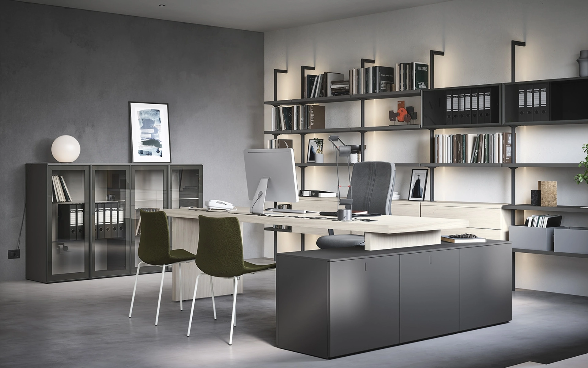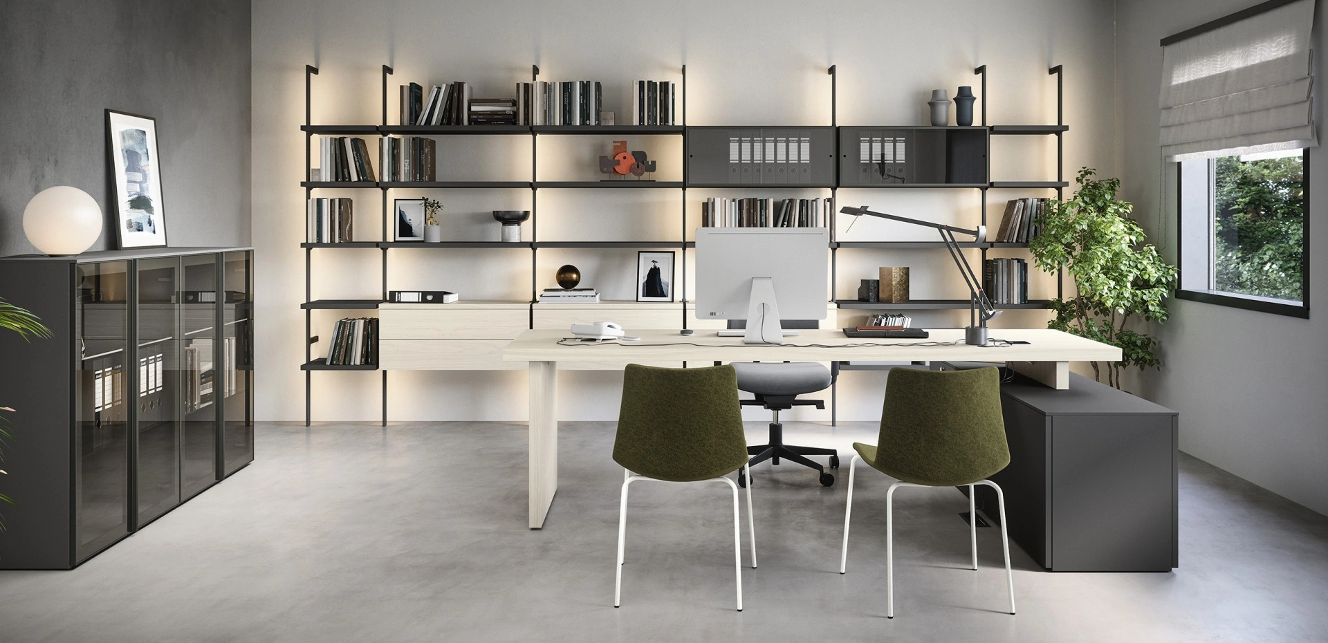 Scrivania Direzionale 01C di Cinquanta3: è uno tra i migliori esempi di mobili per gliambienti lavorativi pratici e belli da vedere del rinomato brand. In negozio puoi toccare con mano le più esclusive proposte d'arredo di Arredo Ufficio in melaminico, sempre di ottima qualità e ideali per locali di ogni tipo. Ammobiliare con cura l'ambiente lavorativo è fondamentale per assicurare l'agio per chi lavora e l’accoglienza per i clienti: il nostro showroom ti aspetta. Per il tuo Arredo Ufficio prendono un ruolo di estrema rilevanza le composizioni arredative con scrivanie direzionali in melaminico, studiate per attrezzare lo spazio.